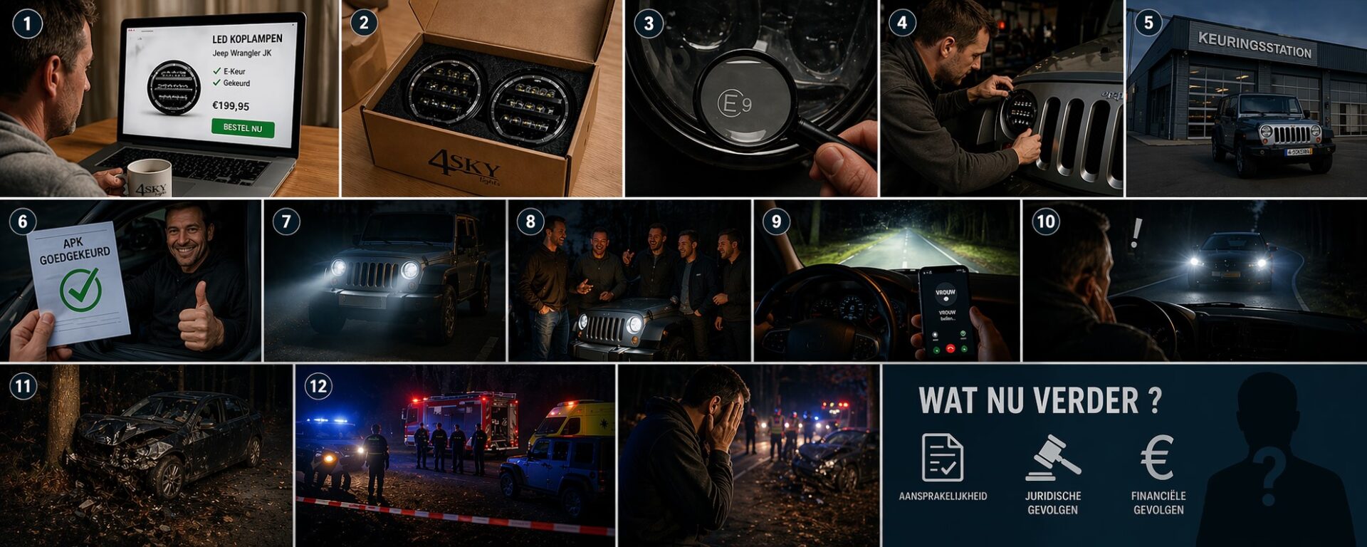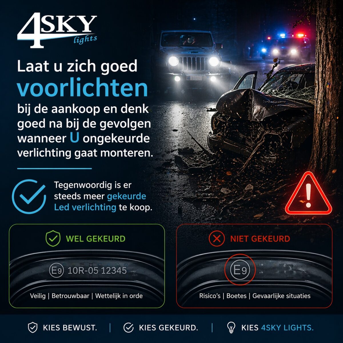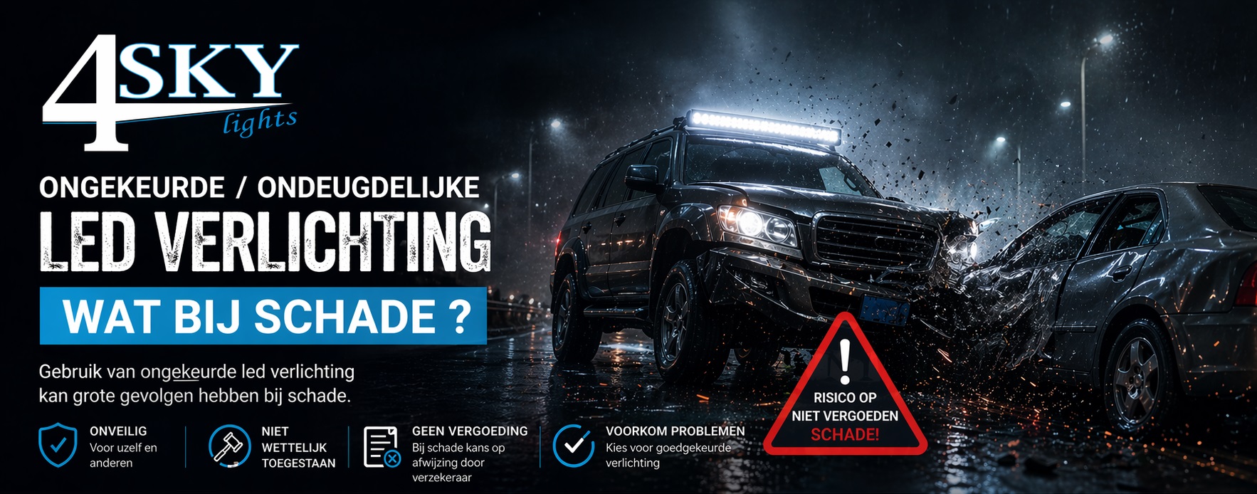 Uw autoverlichting moet u ’s nachts gebruiken, maar ook overdag als het zicht ernstig wordt belemmerd. Alle naar voren gerichte lichten moeten geel of wit zijn. Alle naar achter gerichte verlichting moet rood zijn, behalve het achteruitrijlicht. Deze mag geel of wit zijn. Decoratieverlichting en verlichting onder uw auto is niet toegestaan. Hieronder vindt u een overzicht voor het juiste gebruik van de verlichting van uw auto: