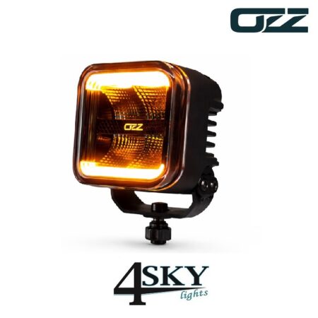 • OZZ SQR 3’’ zwarte compacte LED werklamp met klasse 2 led flitser en positielicht amber/wit ECE R23 R65 gecertificeerd