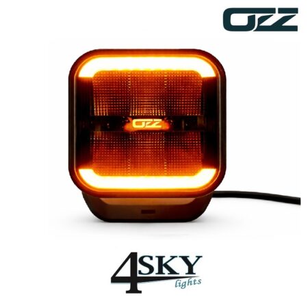 • OZZ SQR 5’’ zwarte compacte LED werklamp met klasse 2 led flitser en positielicht amber/wit ECE R65 gecertificeerd