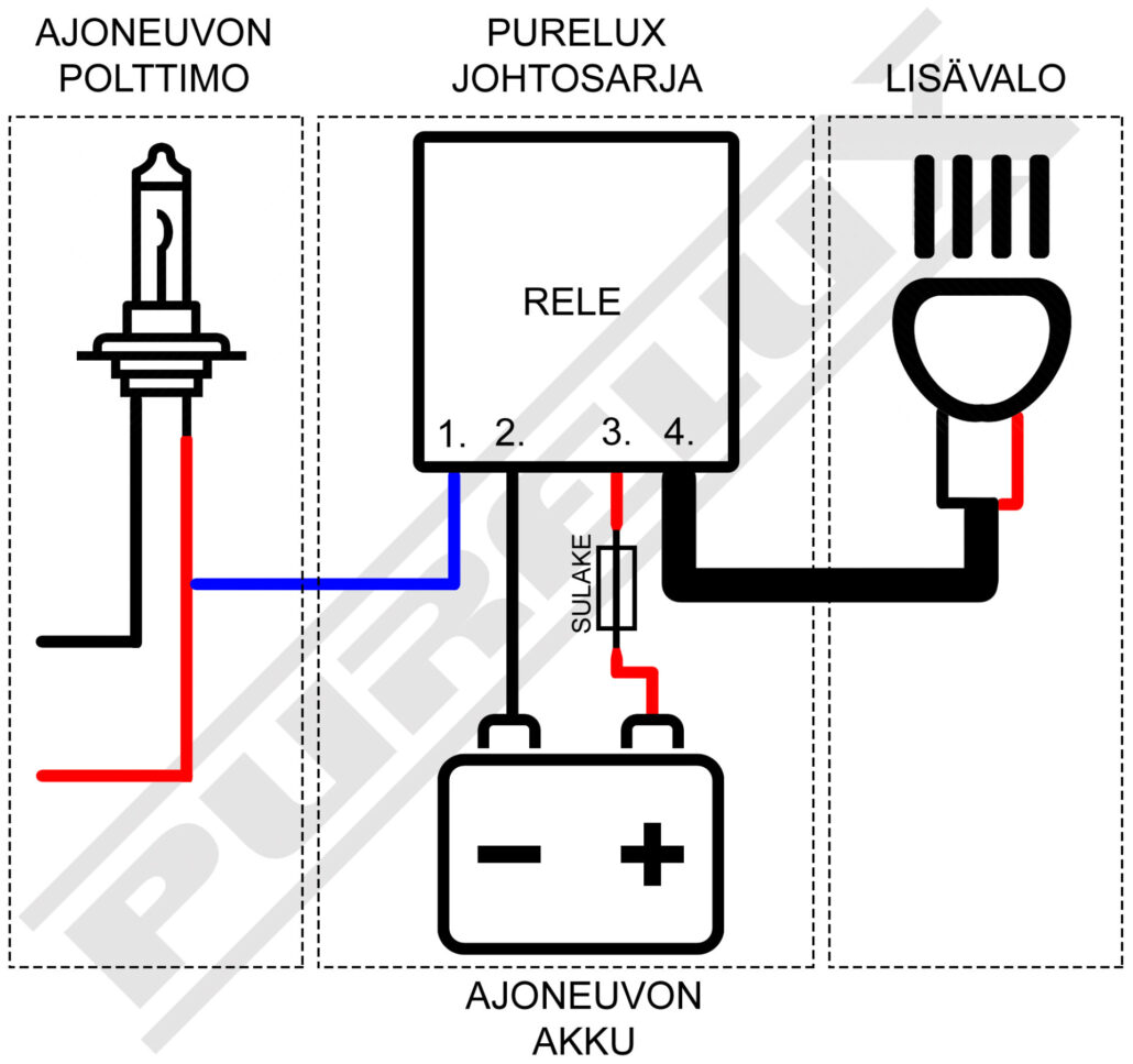 | Wire thickness (from relay to light) | 12AWG / 2.94 mm2 | 14AWG / 1.86mm2 | 12AWG / 2.94mm2 | 14AWG / 1.86mm2 |