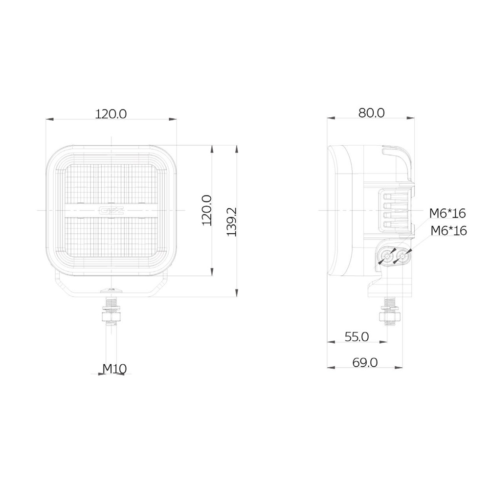 De OZZ SQR 5’’ is gebouwd voor gebruik in de meest veeleisende omgevingen. Dankzij de IP69K-classificatie is deze lamp volledig beschermd tegen stof, modder en hogedrukreiniging met heet water. Dit betekent dat hij probleemloos bestand is tegen intensief gebruik op off-road voertuigen, werkmaterieel en machines die regelmatig worden schoongespoten.