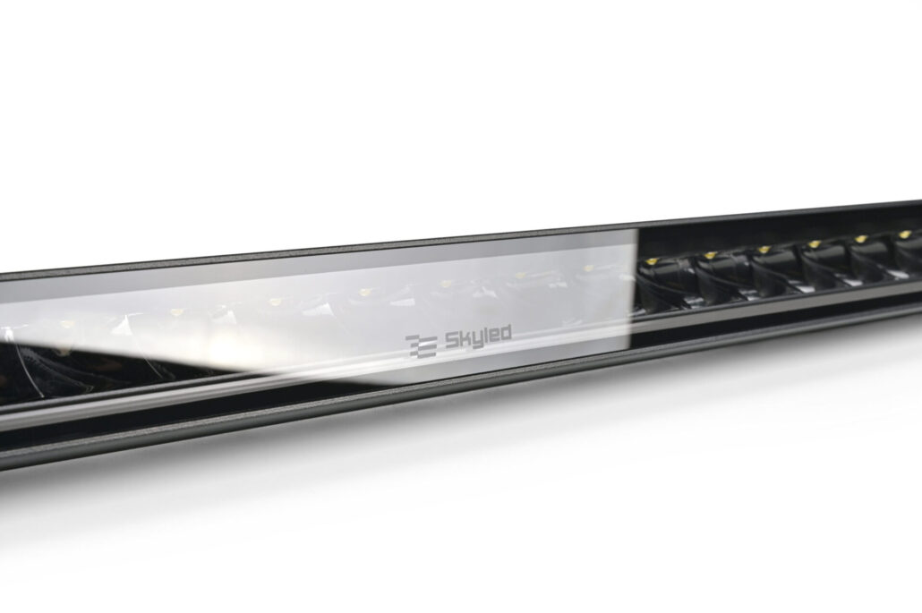 De SkyLED Slide serie is voorzien van een modern, randloos (edgeless) design, wat niet alleen zorgt voor een stijlvolle uitstraling, maar ook functioneel is. Dankzij het gladde, doorlopende oppervlak hecht vuil, modder of sneeuw zich minder snel vast, wat het schoonmaken vergemakkelijkt. Bovendien draagt het ontwerp bij aan een betere kras- en corrosiebestendigheid, doordat er geen open randen of naden zijn waar vuil of vocht zich kan ophopen.
