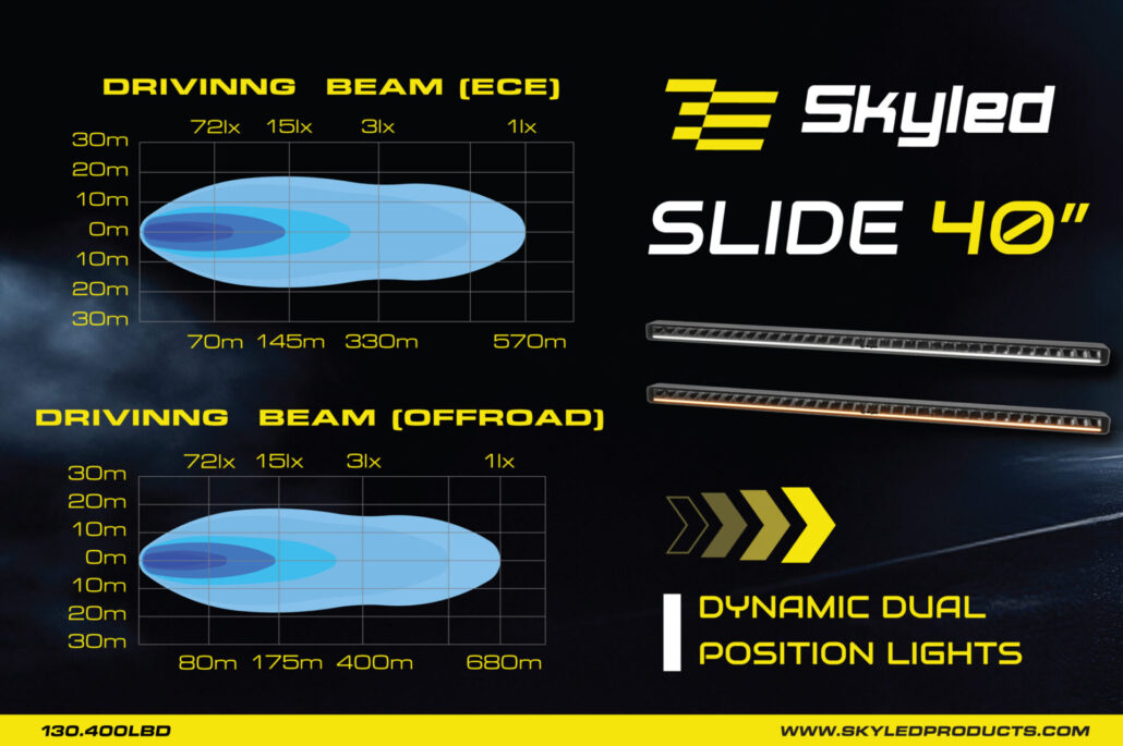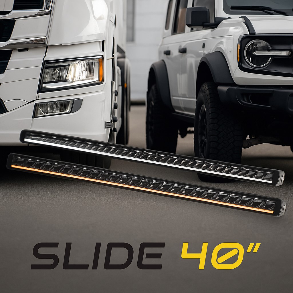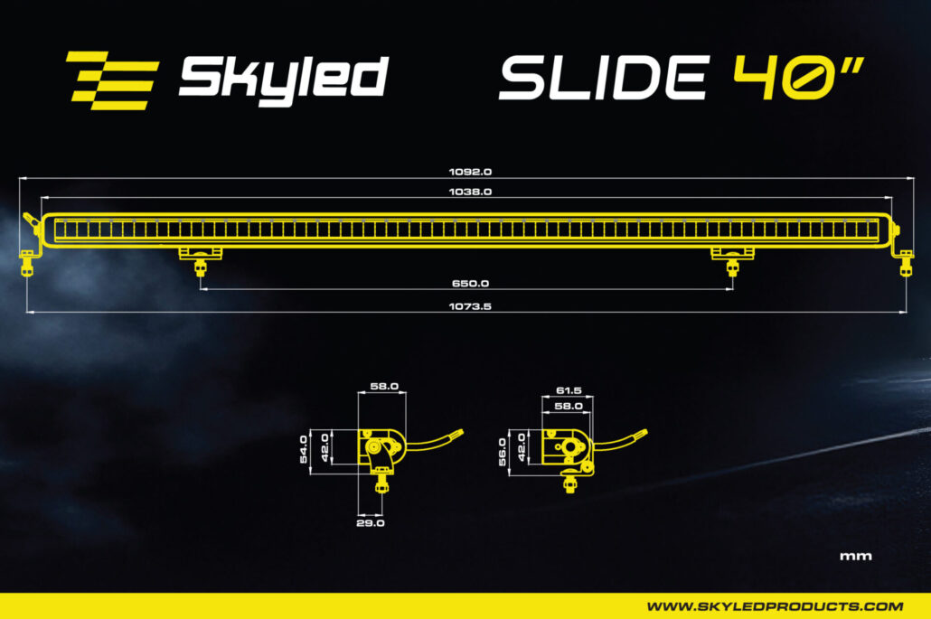 De SKYLED SLIDE 40″ LED Bar is dé keuze voor wie op zoek is naar krachtige, moderne en veelzijdige voertuigverlichting. Deze compacte maar krachtige LED bar met een hoogte van slechts 42 mm is uitgerust met een state-of-the-art dynamisch positielicht, dat bij installatie naar wens instelbaar is in koud wit of oranje via een aparte aansluitdraad. Bij het inschakelen van de verlichting activeert zich het positielicht in een vloeiende, dynamische beweging, wat zorgt voor een opvallend stijlvolle uitstraling.