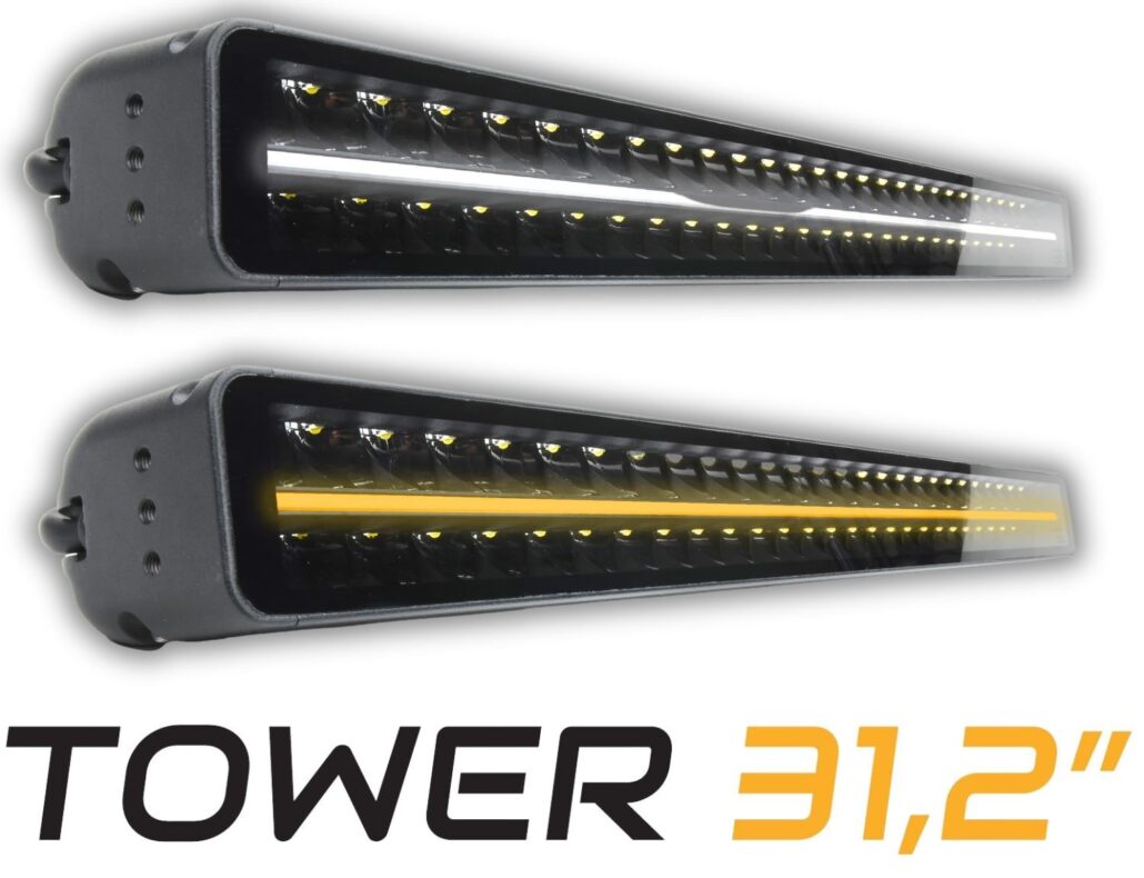 De SKYLED Tower 31.2″ LED Bar is dé ultieme combinatie van brute lichtopbrengst en strak design. Deze hoogwaardige LED bar met een lengte van bijna 80cm is uitgerust met een dubbele rij krachtige leds en levert maar liefst tot 22.680 lumen lichtopbrengst bij het 31.2” model. Perfect voor wie geen compromis wil tussen zichtbaarheid en stijl.