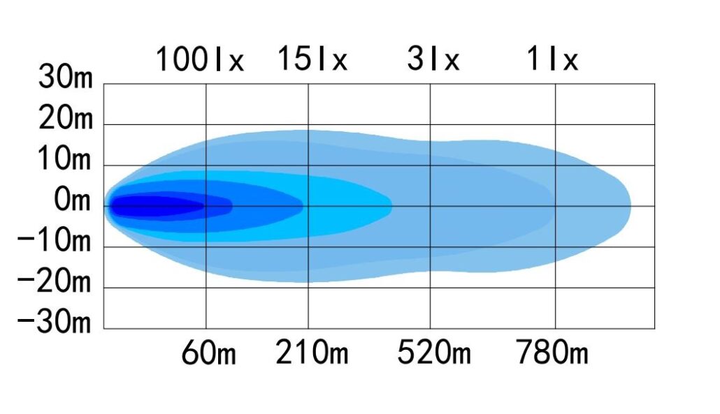 - Lichtbereik: 780m (1 lux) ECE