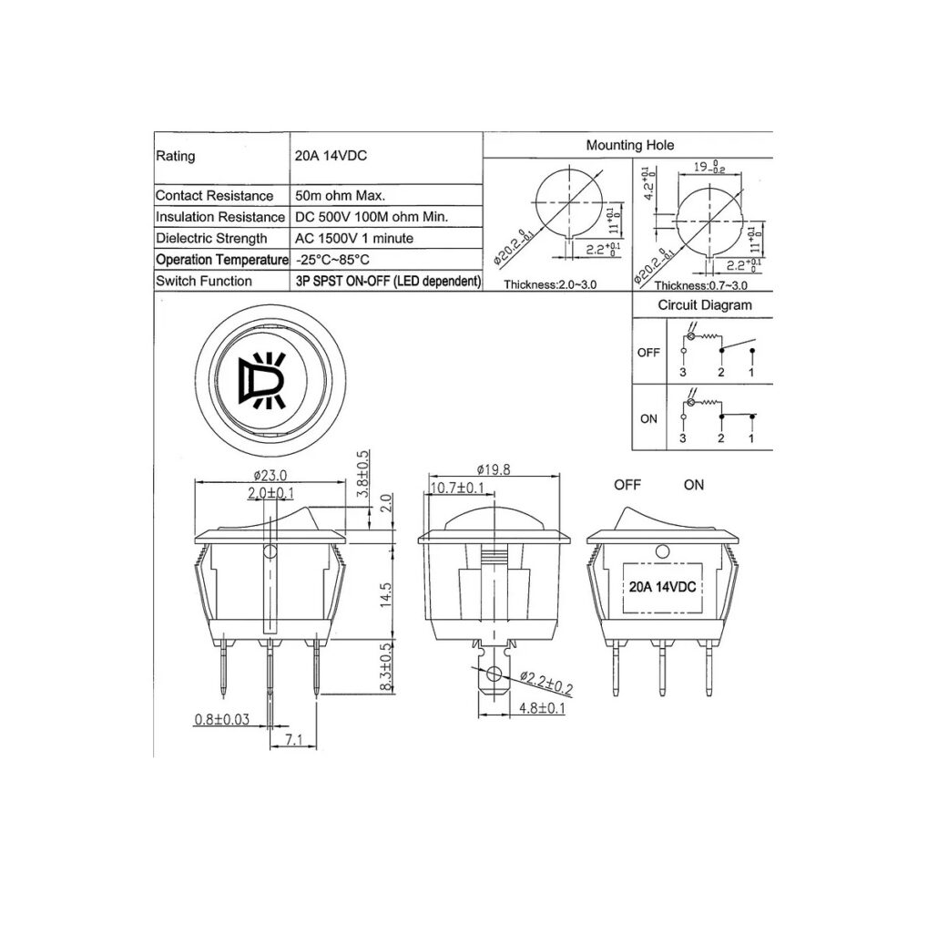 Dankzij het ronde formaat en het universele boorgat-ontwerp van Ø 20 mm is deze schakelaar eenvoudig te monteren in dashboards, panelen of schakelkasten. De stevige zwarte behuizing zorgt voor een duurzame en betrouwbare werking, zelfs in veeleisende omgevingen.