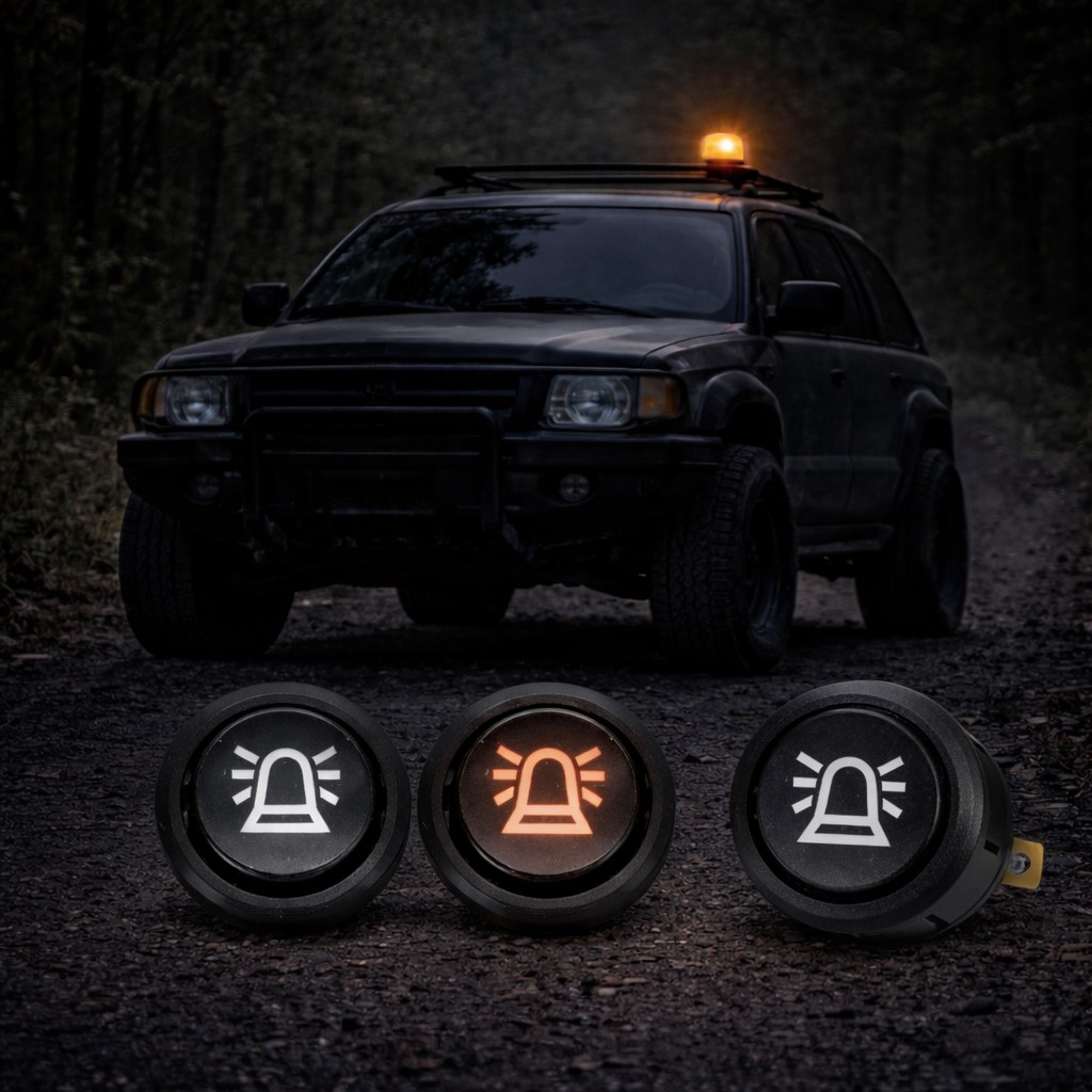 De Wipschakelaar R23 met amber LED-indicator en zwaailamp-symbool is een duidelijke aan/uit-schakelaar voor 12V-systemen. Dankzij het herkenbare symbool en de ingebouwde LED-verlichting is deze schakelaar uitstekend geschikt voor het bedienen van zwaailampen, achteruitrijlampen, werklampen en andere voertuig- of machinesignalen.