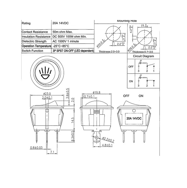 Dankzij het ronde formaat en het universele boorgat-ontwerp van Ø 20 mm is deze schakelaar eenvoudig te monteren in dashboards, panelen of schakelkasten. De stevige zwarte behuizing zorgt voor een duurzame en betrouwbare werking, zelfs in veeleisende omgevingen.
